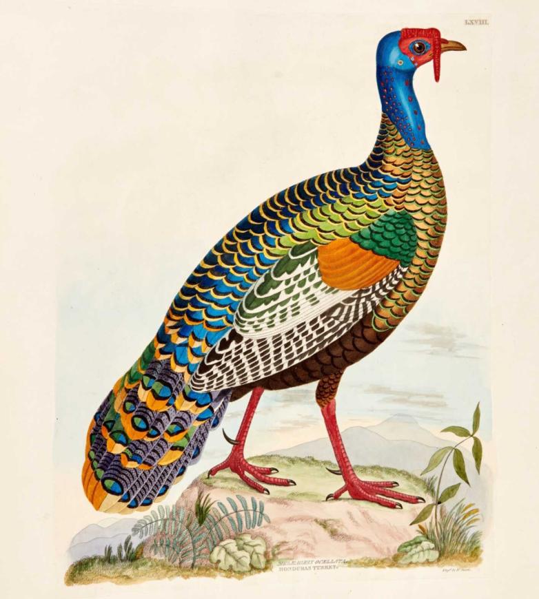 Illustration of an ocellated turkey from Captain Thomas Brown's Illustrations of the American Ornithology, offered at Sotheby's London this week.
