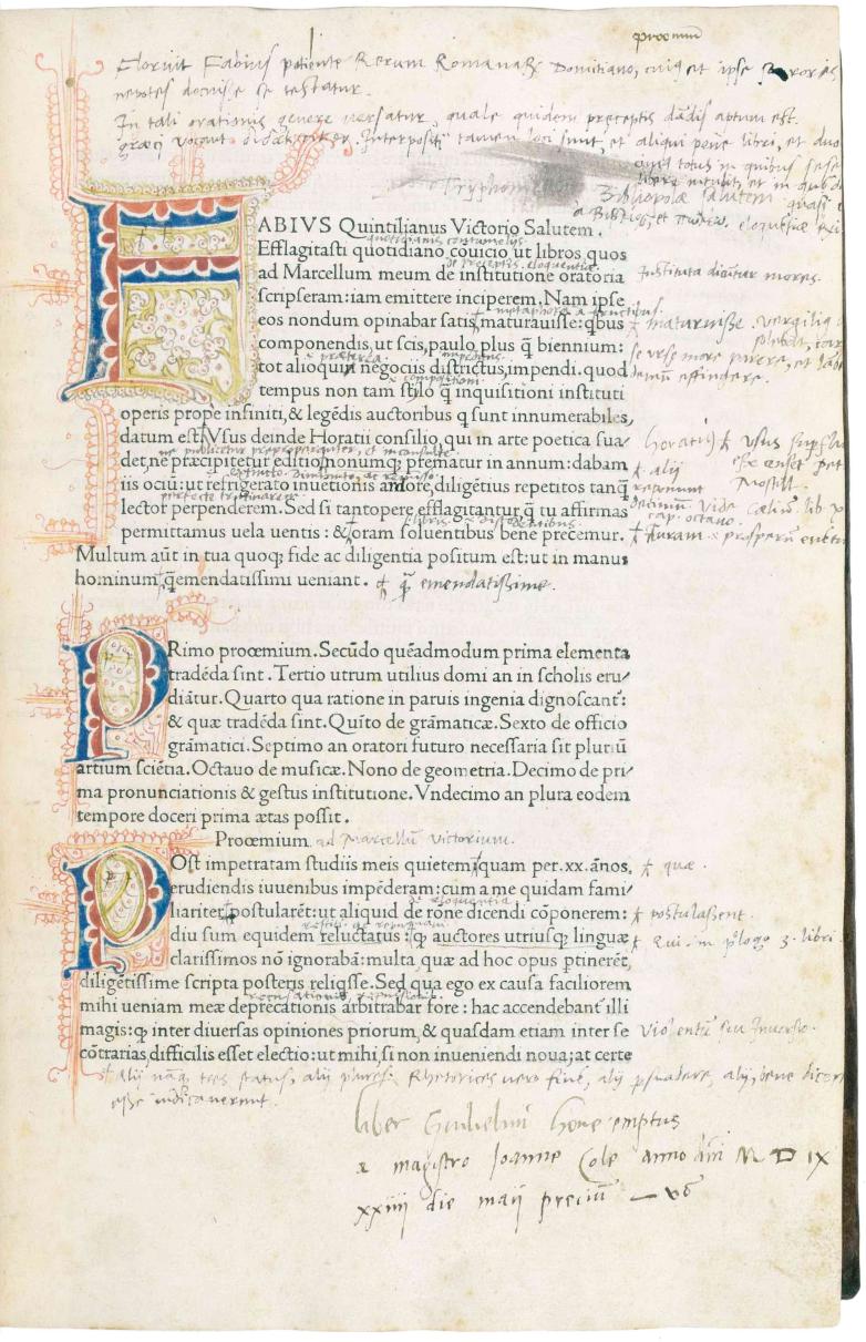 Third edition of Quintilianum eloquentiae fontem, sold at £50,000 to a UK library.
