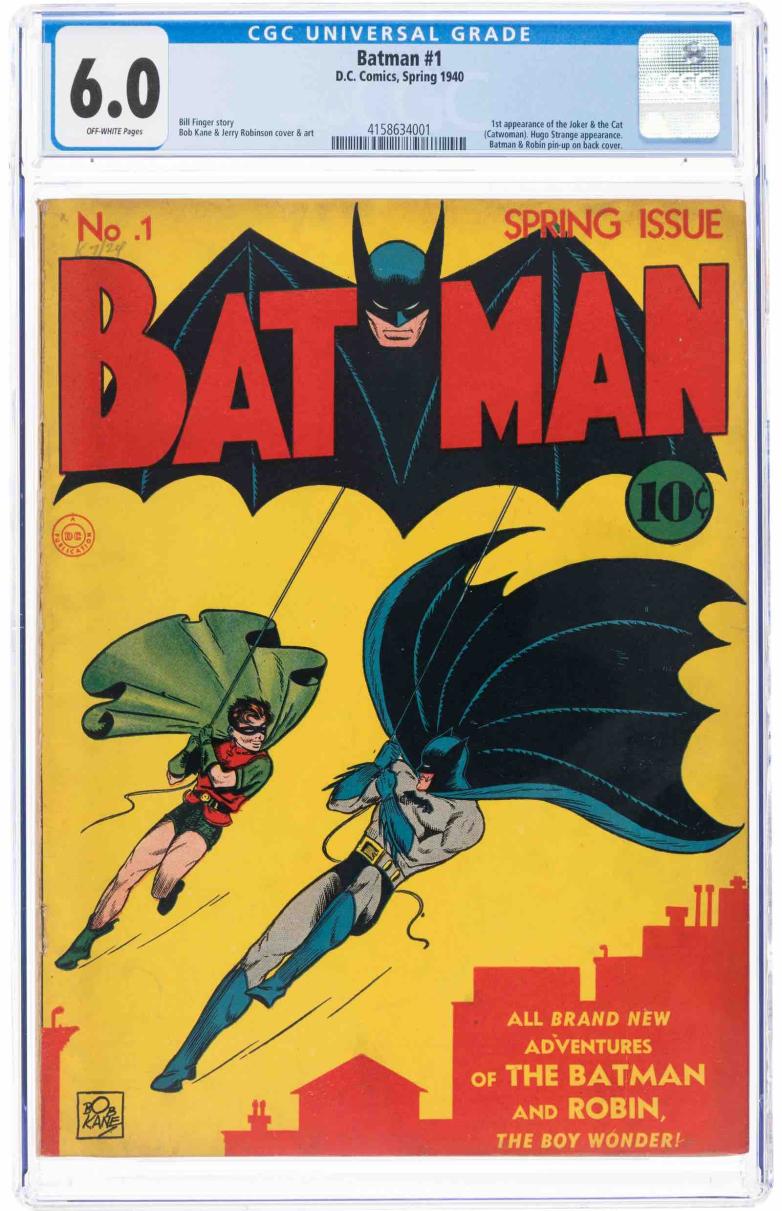 Spider-Man's 1962 inaugural swing through Marvel Comics continues to attract collectors: A copy of Amazing Fantasy No. 15 graded CGC Near Mint- 9.2 sold for $810,000 — a new record for the grade. And, of course, several landmark titles realized remarkable numbers, including a Superman No. 1 graded CGC Very Good/Fine 5.0 that realized $675,000 and a Batman No. 1 graded CGC Fine 6.0 that sold for $552,000.
