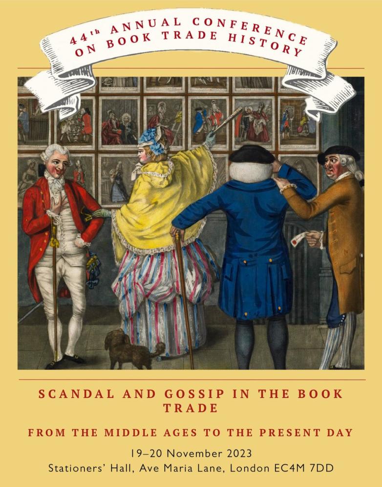 As with many businesses, success in the book trade has always relied heavily on reputation and credit. Yet the relatively small and densely connected networks of the book trade have helped gossip about its members to flourish. In addition, the trade has seen its share of public scandals and activities that whilst kept quiet at the time have since come to light. This conference explores the place of scandal and gossip in the reputation of the book trade and also as a distinctive genre among its products. With topics ranging from the Middle Ages to the twenty-first century, the speakers will explore why scandal and gossip is not merely titillation for the history of the making and trade of books.