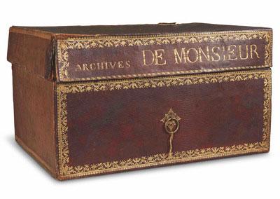 a Louis XIV French gilt-tooled letter document box reputed to have been owned by Philippe, Duc d'Orléans (1674-1723), a passionate artist and art collector.