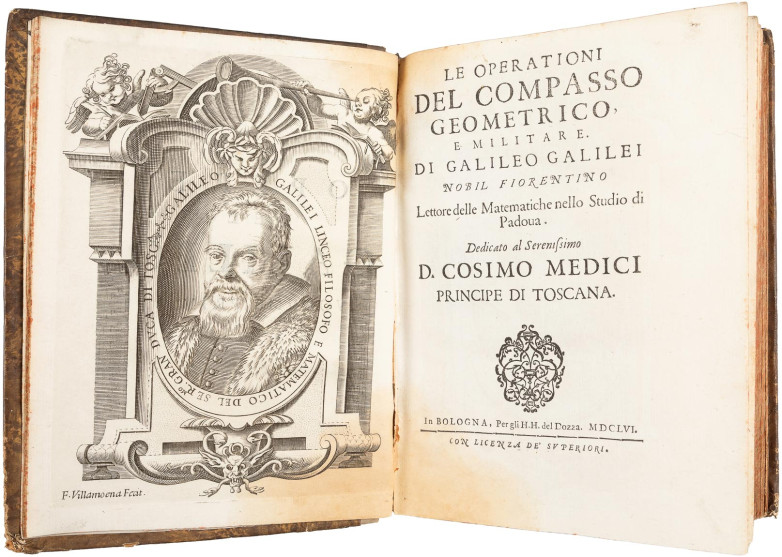Engraved portrait of Galileo in a copy of the first collected edition of his works, offered this week at Potter & Potter.