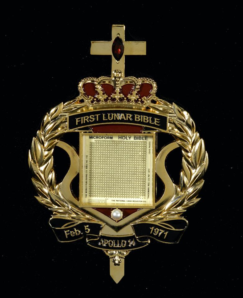 Astronaut Edward White II, prior to his death in the tragic fire that killed all three crew members on the Apollo 1 mission, told the press that he hoped to carry a Bible to the Moon. This goal resonated with the Rev. John M. Stout, who, along with his family, founded the Apollo Prayer League in 1968 in memory of the Apollo 1 casualties. Their first act was to start the Lunar Bible initiative – the mission statement of which read ‘to pray for the safety of the astronauts and the skill of NASA employees who built the rockets they would fly’. The core mission however was ‘most importantly to land the bible on the Moon’. They placed the good books onboard Apollo 13 (1970) however it failed to land. So it wasn't until February 5th, 1971, when Antares, Apollo 14’s Lunar Module, touched down that the bible finally reached the Moon.