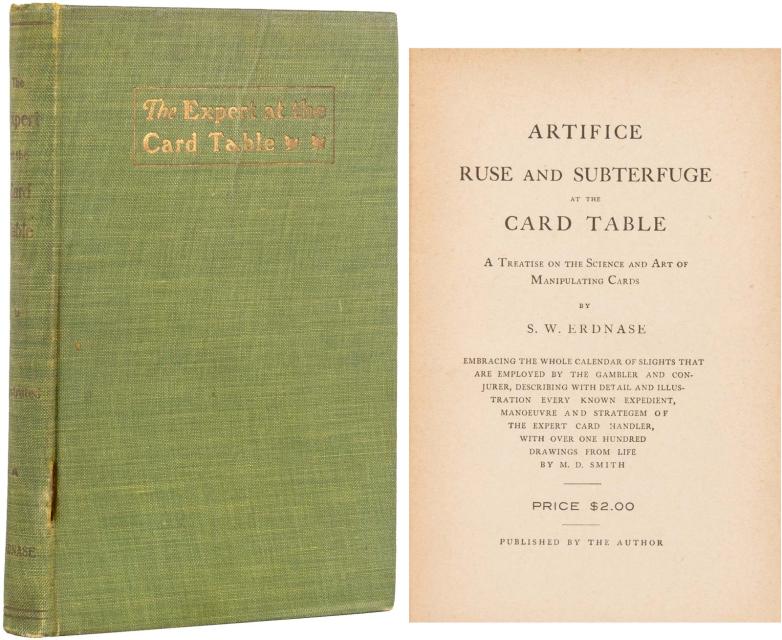 * The Expert at the Card Table by S.W. Erdnase (pseudonym). Chicago: Author, 1902. First edition. Illustrated with over 100 drawings “from life” by Marshall D. Smith.