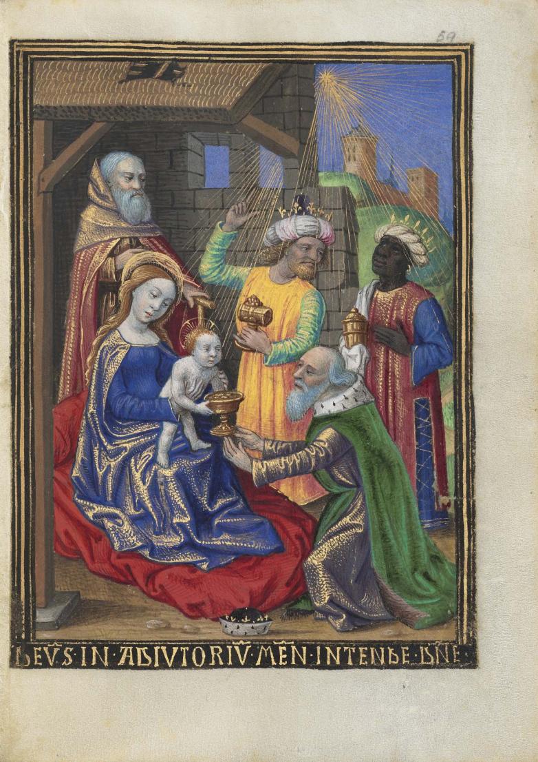 Georges Trubert. French, active Provence, France 1469 – 1508. The Adoration of the Magi, about 1480 – 1490. Tempera colors, gold leaf, gold and silver paint, and ink on parchment.