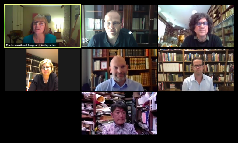 Earlier today, the International League of Antiquarian Booksellers (ILAB) hosted a 90-minute webinar to discuss how the COVID-19 health crisis is affecting antiquarian booksellers around the world. ILAB president, Australian bookseller Sally Burdon, moderated the lively discussion, which included panelists Brad Johnson of the United States; Mario Giupponi of Italy; Pom Harrington of the UK; Ryu Sato of Japan; Hervé Valentin of France; and Sibylle Wieduwilt of Germany.