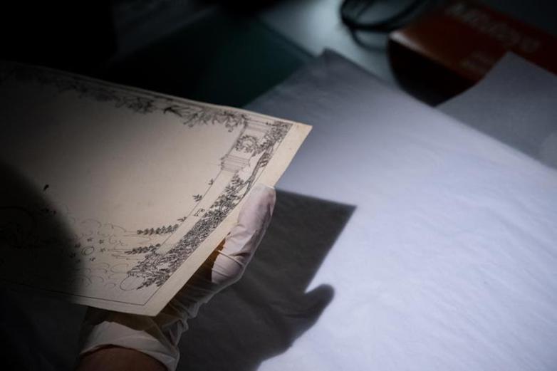 In 1833, Florence documented an experiment where he blackened a piece of glass, used a tool to etch designs into it, and placed the glass on a sheet of silver nitrate sensitized paper. This method kept the entire surface of the paper from being darkened and kept the image intact, making a positive instead of a negative image. It is believed he used this or a similar process to create the three surviving objects that were studied – one that was a decorative border template for a masonic diploma that was possibly made using either silver nitrate or silver chloride, and two other design templates that were possibly made using gold chloride and used for pharmacy labels.