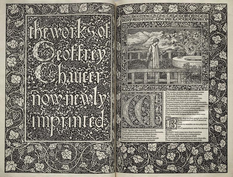 For its part, the University of Delaware Library, Museums and Press presents A Book with a Claim to Beauty: Marking the 125th Anniversary of William Morris’s Kelmsoctt Chaucer, an online exhibition that highlights two copies of the Kelmscott Chaucer alongside other notable items associated with the Kelmscott Press.