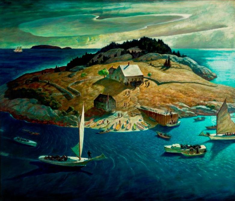 N. C. Wyeth (1882–1945), Island Funeral, 1939, egg tempera and oil on hardboard, 44 1/2 x 52 3/8 in.
