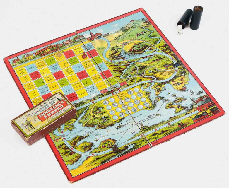 During and after his life, the name and image of Mark Twain have been used to sell cigars, games, domestic goods, and foods. Many popular examples are on view in the exhibition, including The Good Old Game of Innocence Abroad, a board game named for Twain’s travelogue, created by Parker Brothers in 1888. A video installation shows many Twain-influenced productions from the 1960s to the present day, showing Twain’s enduring presence as a pop-culture phenomenon.