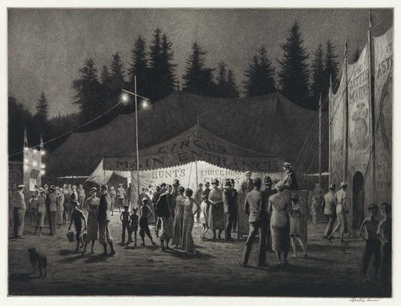 Martin Lewis, Circus Night, drypoint and sandpaper ground, 1933, sold to a collector for $22,500.