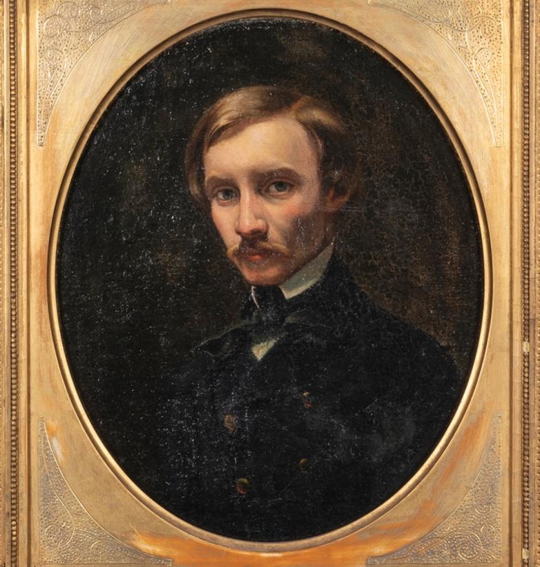 · A painting of novelist Robert Louis Stevenson (1850-1894) by William Cosens Way (1833–1905), is estimated at $300-500. This oil on canvas work is framed, measures 15 ½ x 13," and dates from c. 1870. This portrait was likely completed in the early years of the writers career as he was making a name for himself in London’s literary circles. Way's portraits are rare as he is primarily associated with ruins and landscape works.