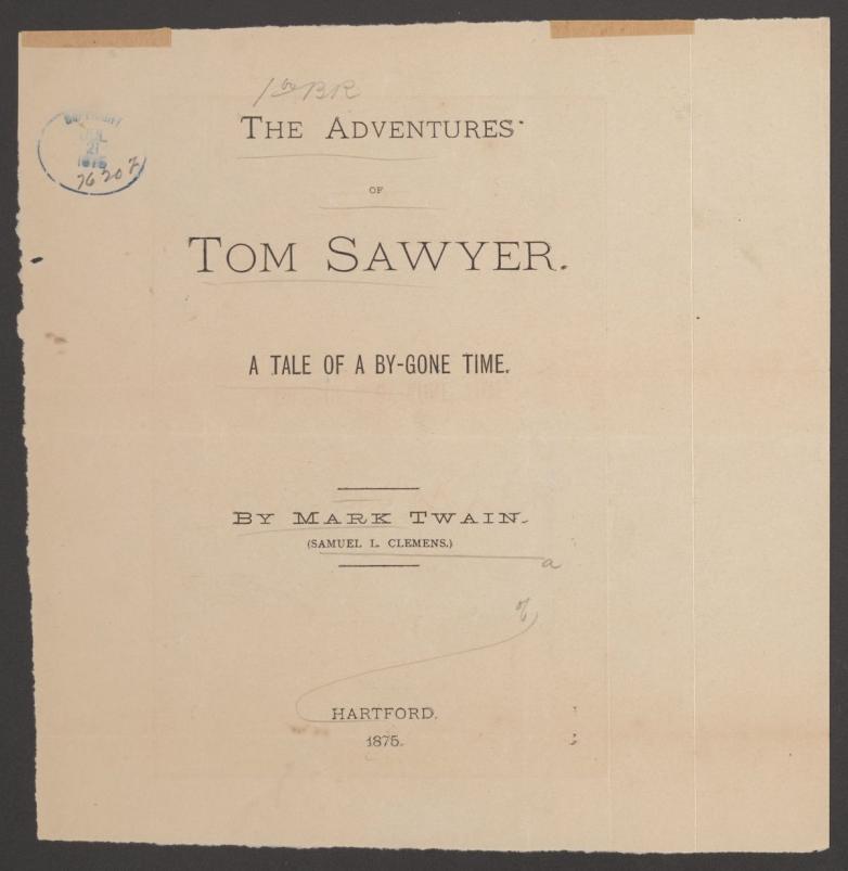 As Gettins points out, some of the deposited title pages offer intriguing bits of literary history. For example, Mark Twain’s 1875 application for The Adventures of Tow Sawyer (pictured above) “bears a sub-title that didn’t make it to publication.” Many authors, including Frederick Douglass and Nathaniel Hawthorne, signed their submissions.
