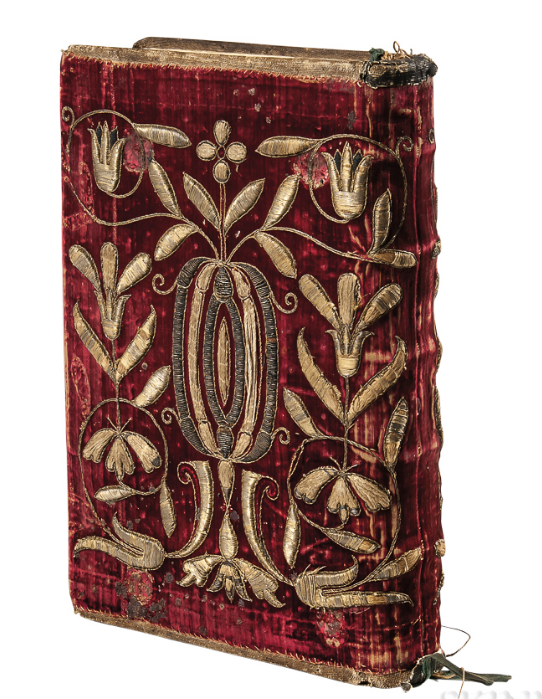 1610 Antwerp Missale Romanum in embroidered velvet binding, offered at Skinner this week.