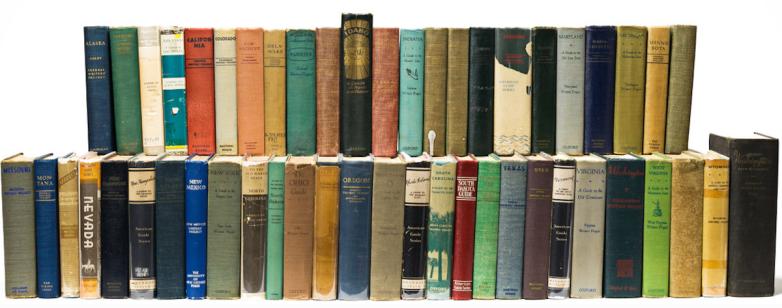 So it was with excitement that I watched today’s auction at Swann Galleries, particularly lots 285 and 286. The former was a complete (if not “bibliophilic,” said Swann) set of 50 American Guides in a mix of editions, some with original dust jackets; it hammered for $2,200 ($2,750 with buyer's premium). The latter was a grouping of American city and regional guides published from 1937-1951. They too were snapped up, for $1,200 ($1,500 with bp).