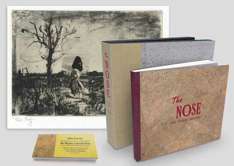 Under their leadership, revitalization has already begun. Historically, most Arion books featured a classic or public-domain text paired with new work by a major artist. “Over the past year we have worked to move the press forward,” Blythe said. “One example of this is our upcoming project with Margaret Atwood, who wrote a new piece specifically for Arion.” Atwood’s short story, a riff on Tennyson’s Le Morte d’Arthur, will be illustrated by the visual artist and novelist Audrey Niffenegger. Other forthcoming books include an edition of musical icon Patti Smith’s 1992 memoir, Woolgathering, with artwork by composer/sound artist Christian Marclay, and a new version of Nikolai Gogol’s 1836 novella, The Nose, with drawings by animation artist William Kentridge.