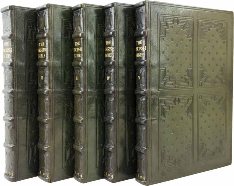 $22,500 This copy of the Doves Bible, a limited edition, five-volume bible printed under Cobden-Sanderson that is lauded as one of the great English private press books, is extra noteworthy because it was bound (in stately dark green morocco) by Ellen Gates Starr, a social reformer and cofounder with Jane Addams of Hull House in Chicago, where she operated a bindery and taught bookbinding to the underprivileged.