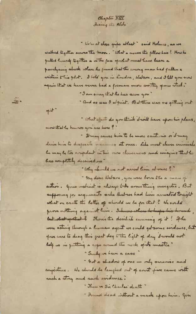 “This particular manuscript page is highly desirable among the surviving pages,” said director of acquisitions Brian Chanes. “It is in very clean condition and is the beginning of a chapter called ‘Fixing the Nets.’ The scene depicts one of the quintessential dialogues of the series, in which Holmes converses with Watson about a mysterious murder on the moor.”