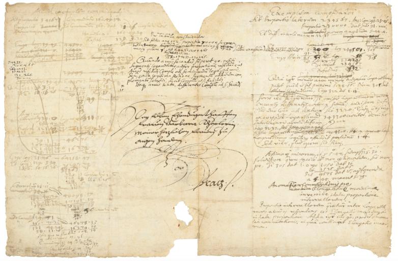 An autograph scientific manuscript using the new concept of logarithms to determine the movement of the planets by Johannes Kepler