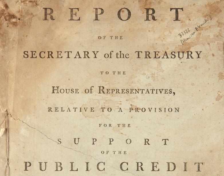 Report of the Secretary of the Treasury to the House of Representatives...1790, a first edition of Hamilton’s fundamental report that ushered in the financial revolution in the United States, achieved $81,900.